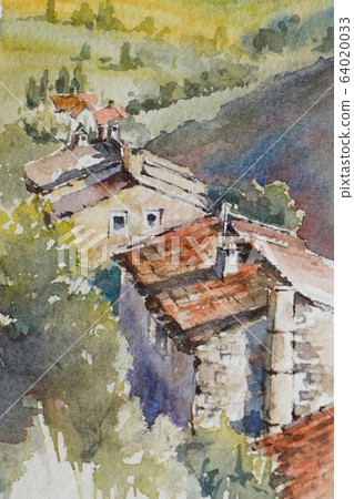 European small village Watercolor painting... - Stock Illustration [64020033] - PIXTA