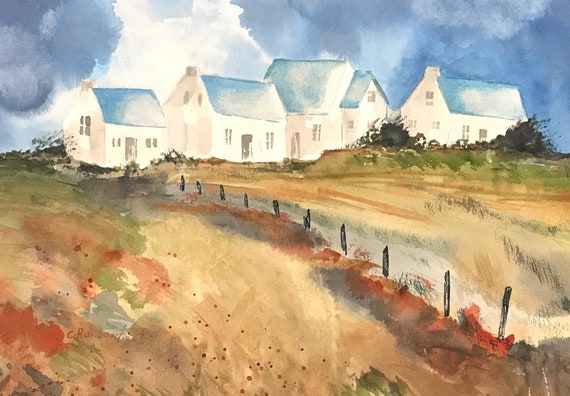 Country landscape/ village watercolor/ French farmland/ rustic | Etsy